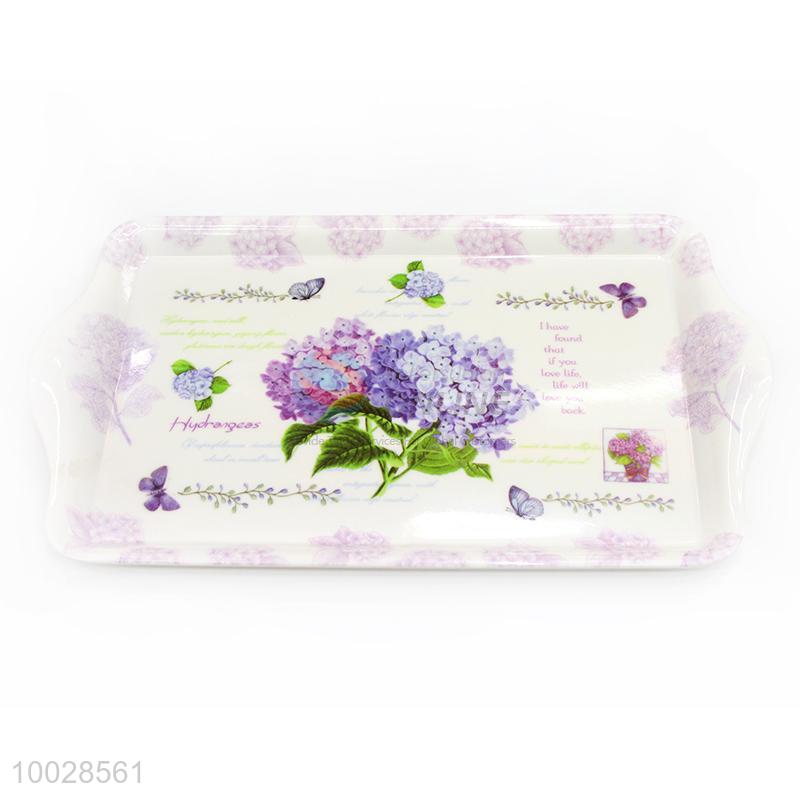 Purple Flower Pattern Rectangular Melamine Fruit Plate/Fruit Tray