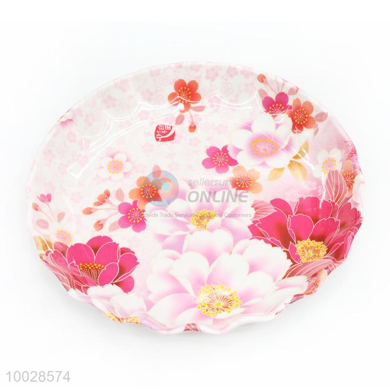 Wholesale Wave Border Colorful Flower Pattern Fruit Plate