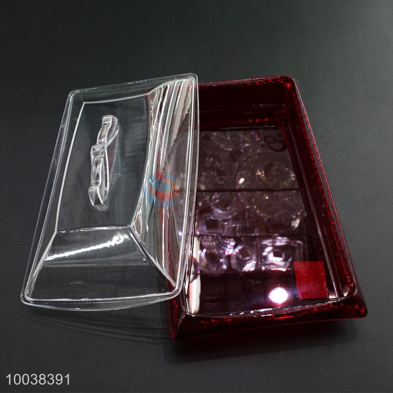 Rectangle red acrylic cake/dessert/fruit plate with transparent cover