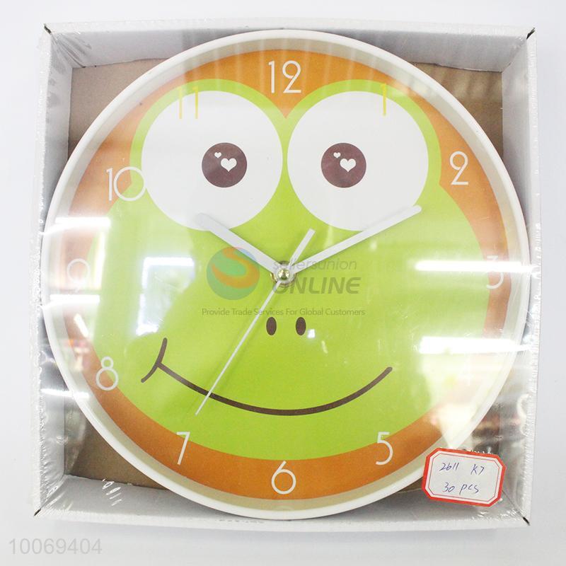 Round plastic wall clock with frog pattern
