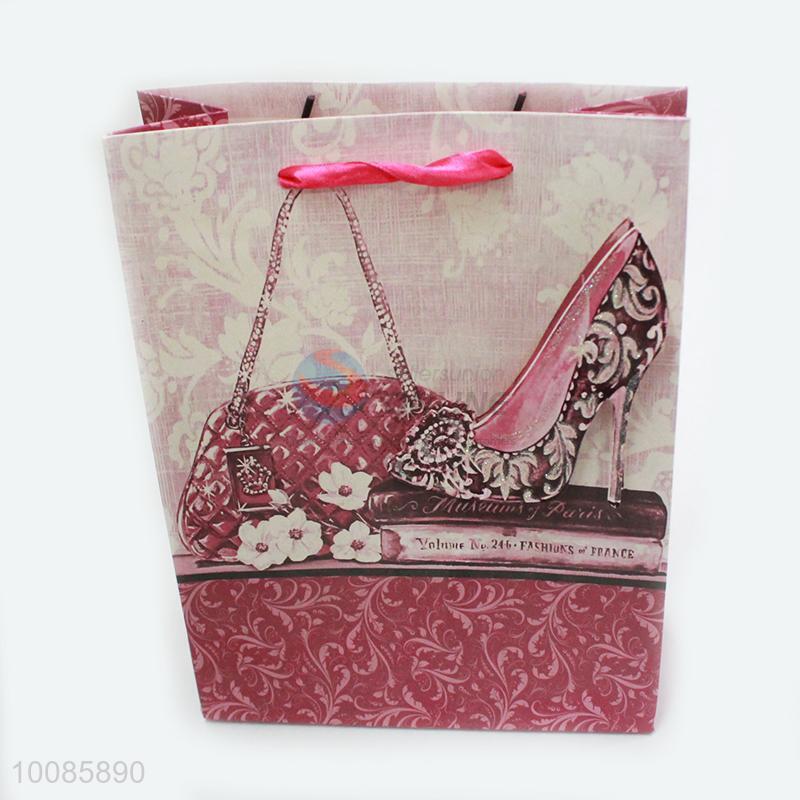 High-heeled Shoe White Cardboard Paper Handbag/Gift Bag With Paster