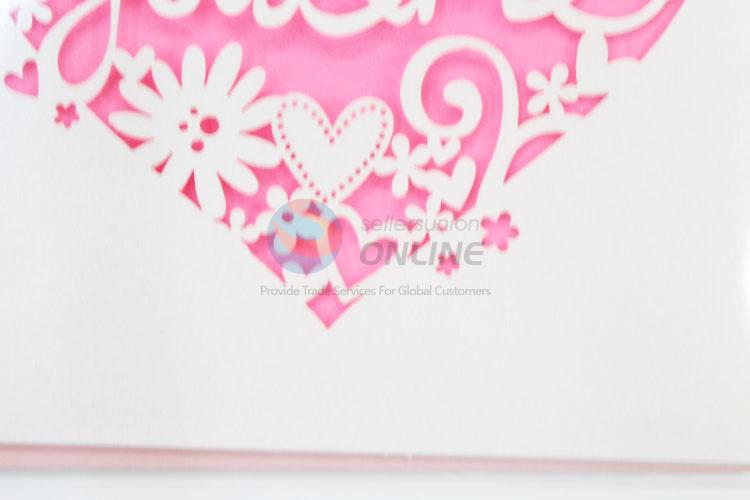 Pink Color Heart Shape Hollow Out Flowers Greeting Card Birthday Card Gift Card