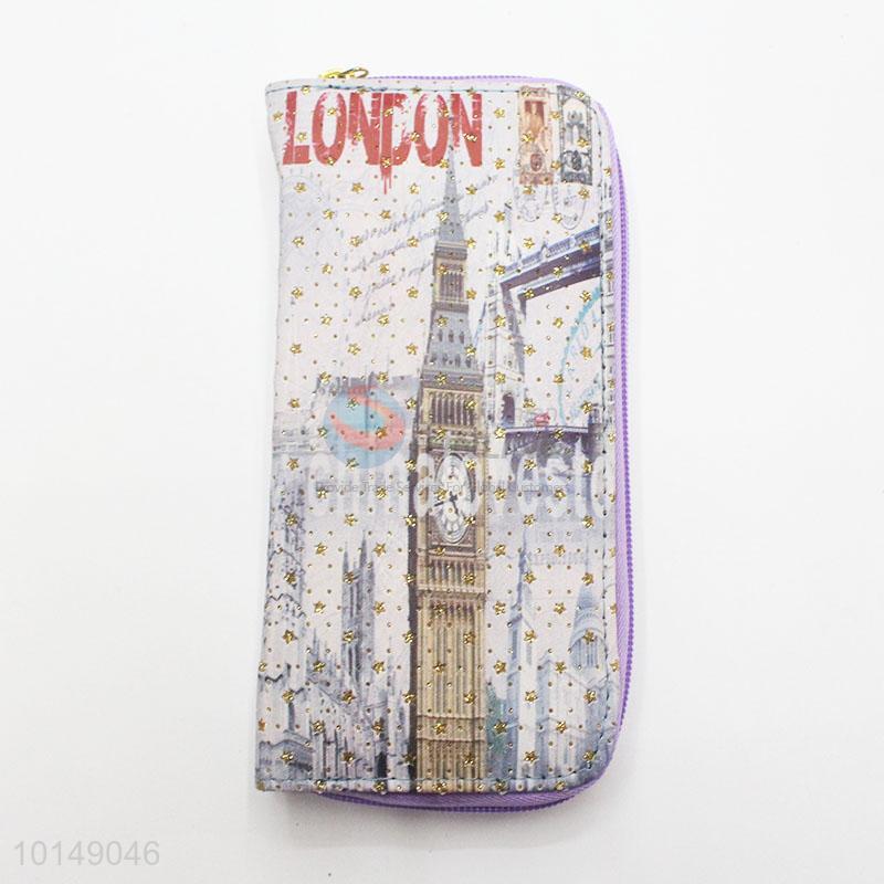 Glitter Star Big Ben Printed Zipper Long Wallet PU Leather Purse Ladies Clutch Card Holder