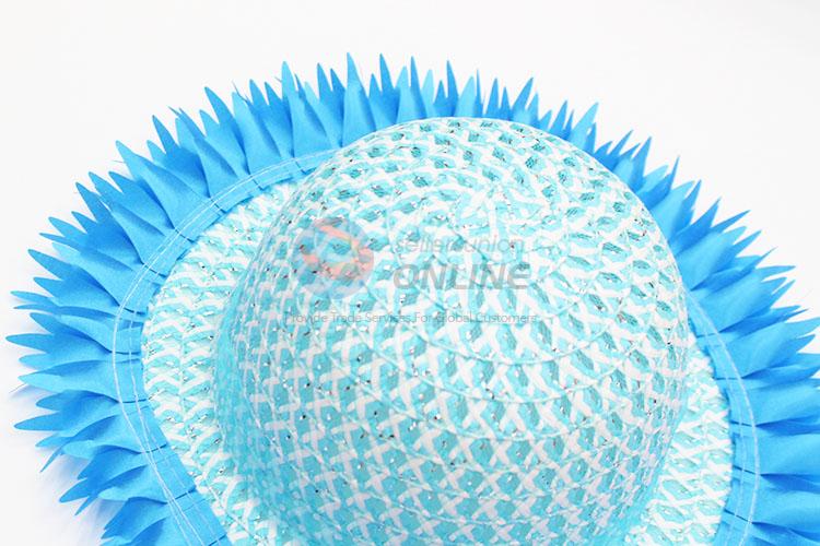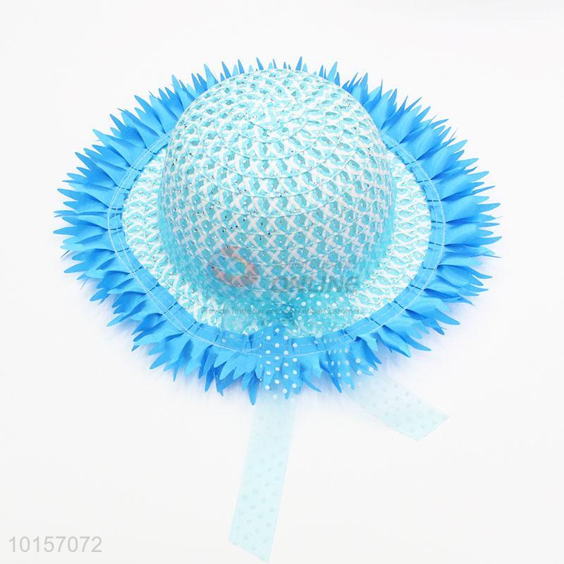 Custom blue paper straw hat with decorative bowknot
