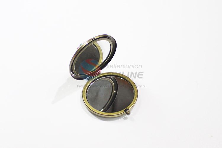 Beautiful design round hollow alloy mirror with colorful stones