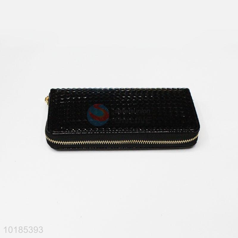 Factory Hot Sell Black Rectangular PU Purse/Wallet for Ladies