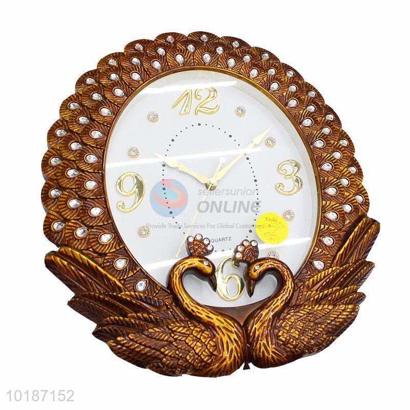 Factory Price Exquisite Bronze Peacock Decoration Wall Clock