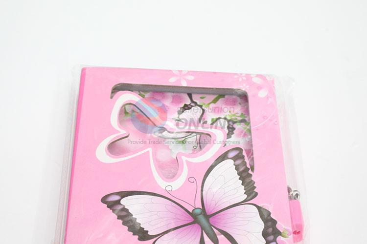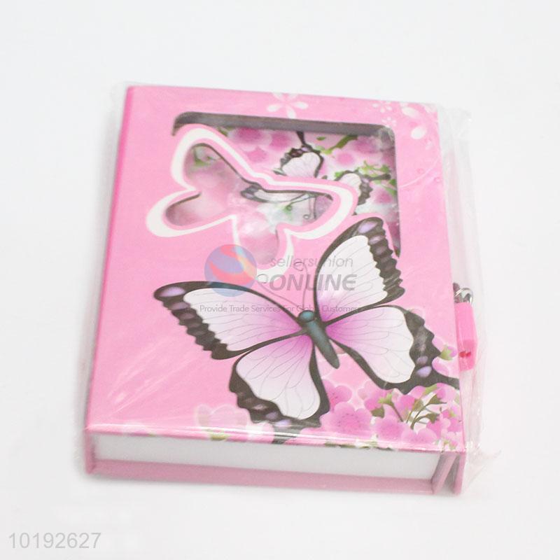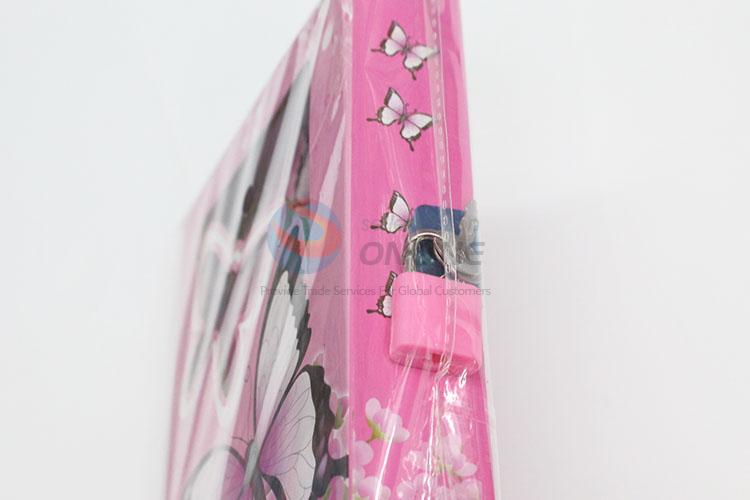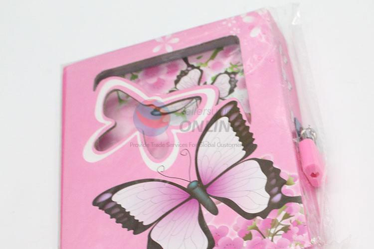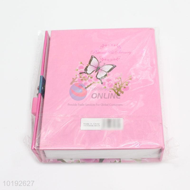 Student Pink Flower Butterfly Dairy Notebook with Lock