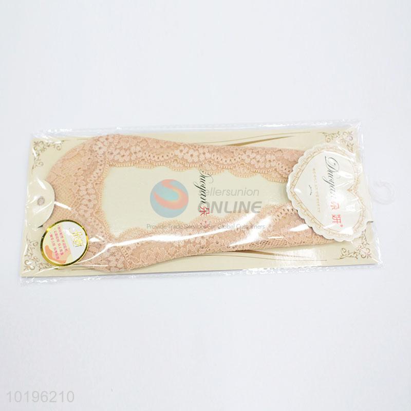 High Quality Pink Color Lace Design Women Fashion Socks