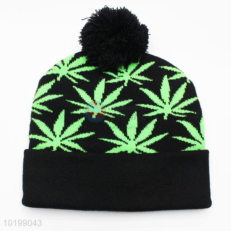 Black maple pattern winter hat/acrylic knitted hat with top ball