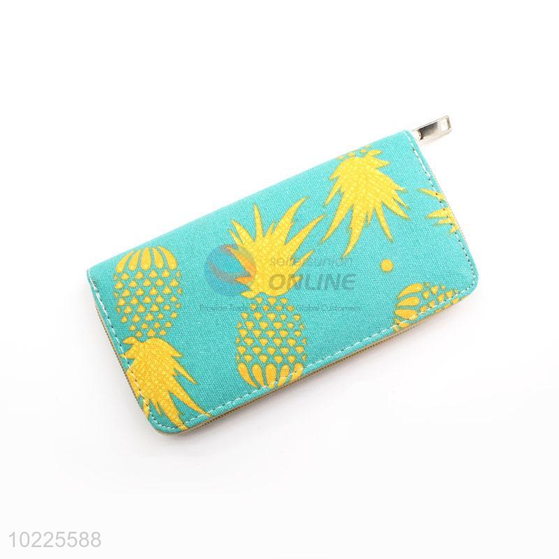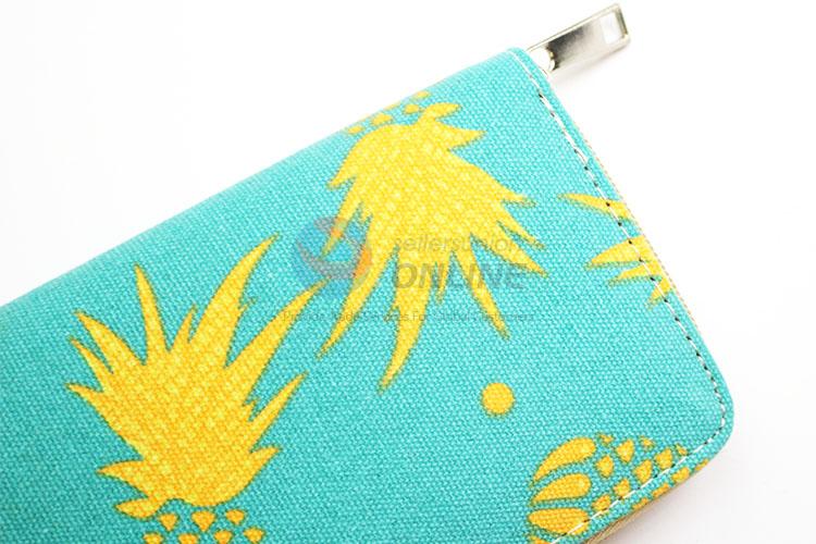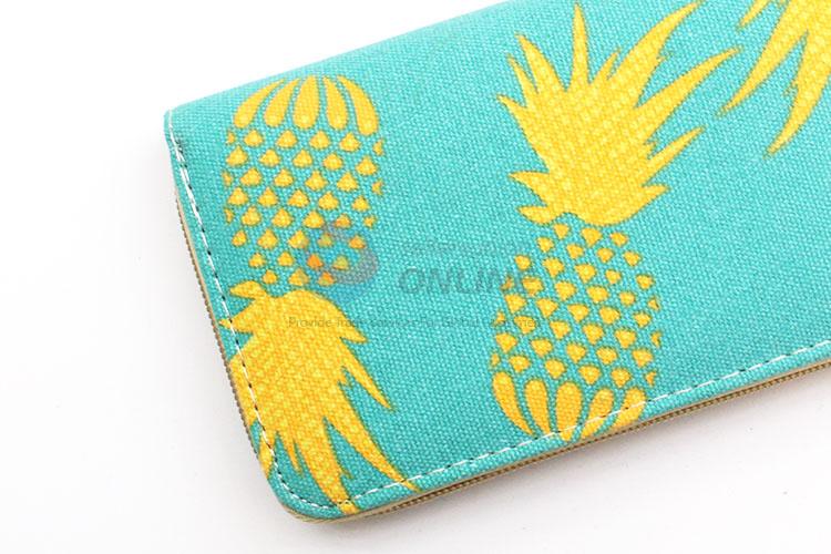Yellow Pineapple Printed Canvas Purse&Wallet with Copper Zipper for Sale