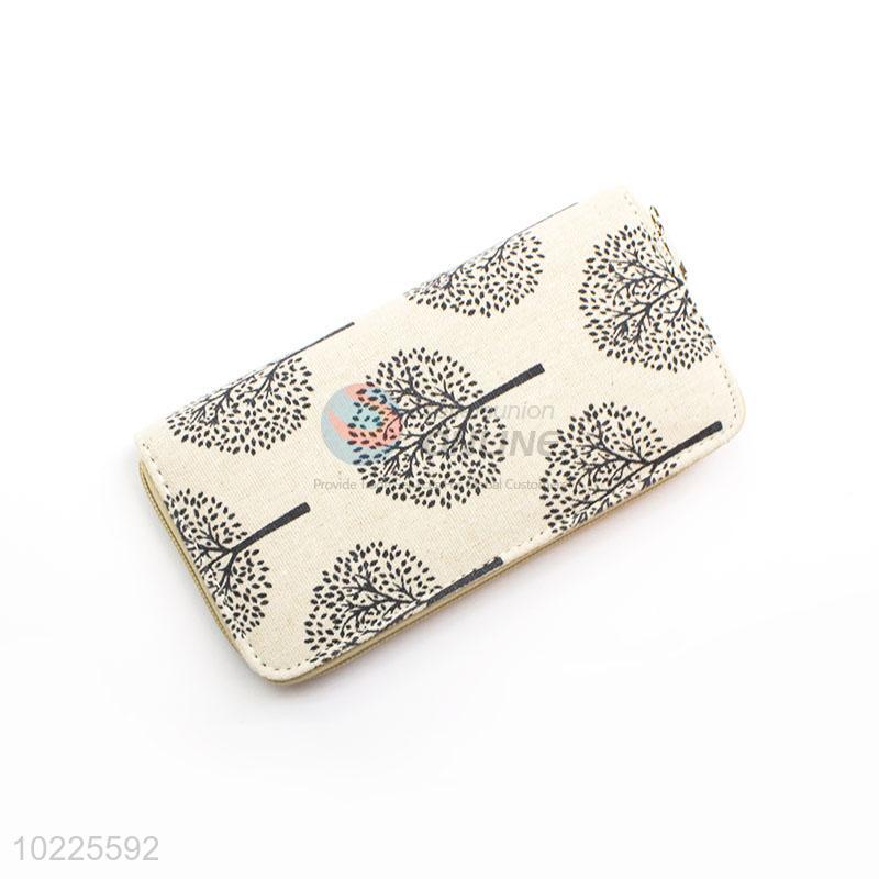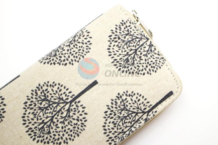 Nice Tree Printed Canvas Purse&Wallet with Copper Zipper for Sale