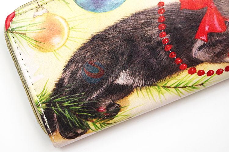 Black Cat Printed PVC Purse&Wallet with Copper Zipper for Sale