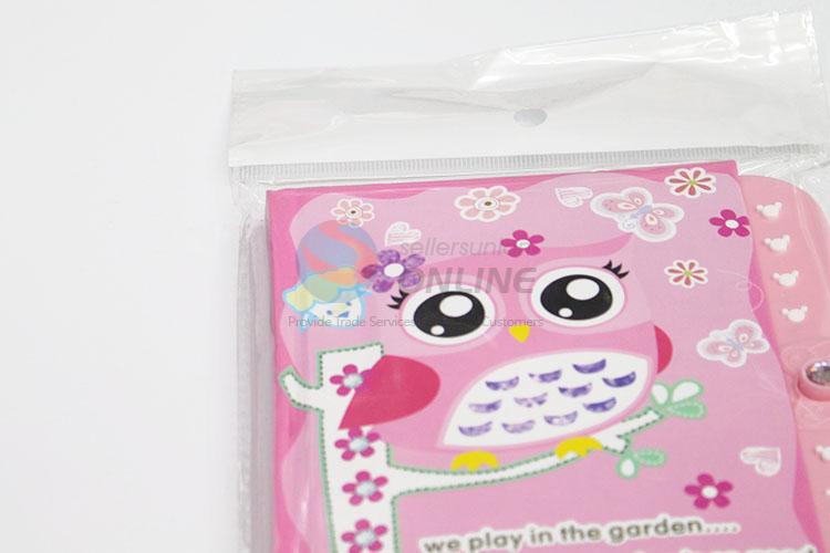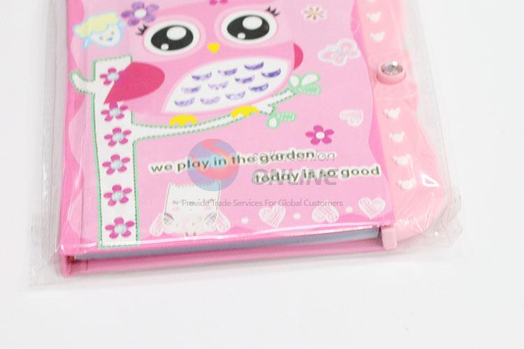 Pink Owl Printed Kids Cardboard Cover Dairy Notebook with Password