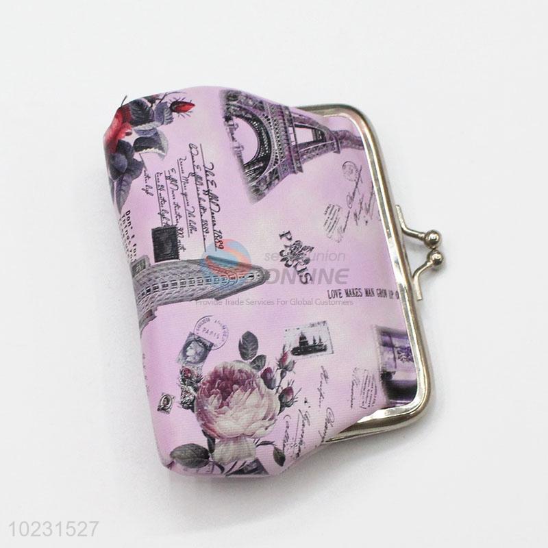 Purple Color Building Pattern PVC Coin Purse