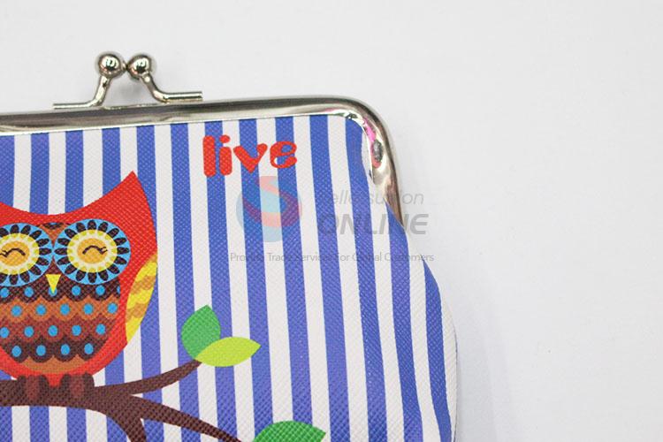 New Lovely Owl Printed Blue Striped Pattern PVC Coin Bag