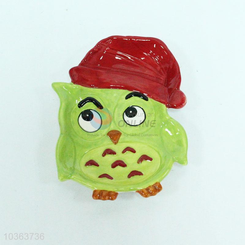 Promotional new style green&red owl pattern plate