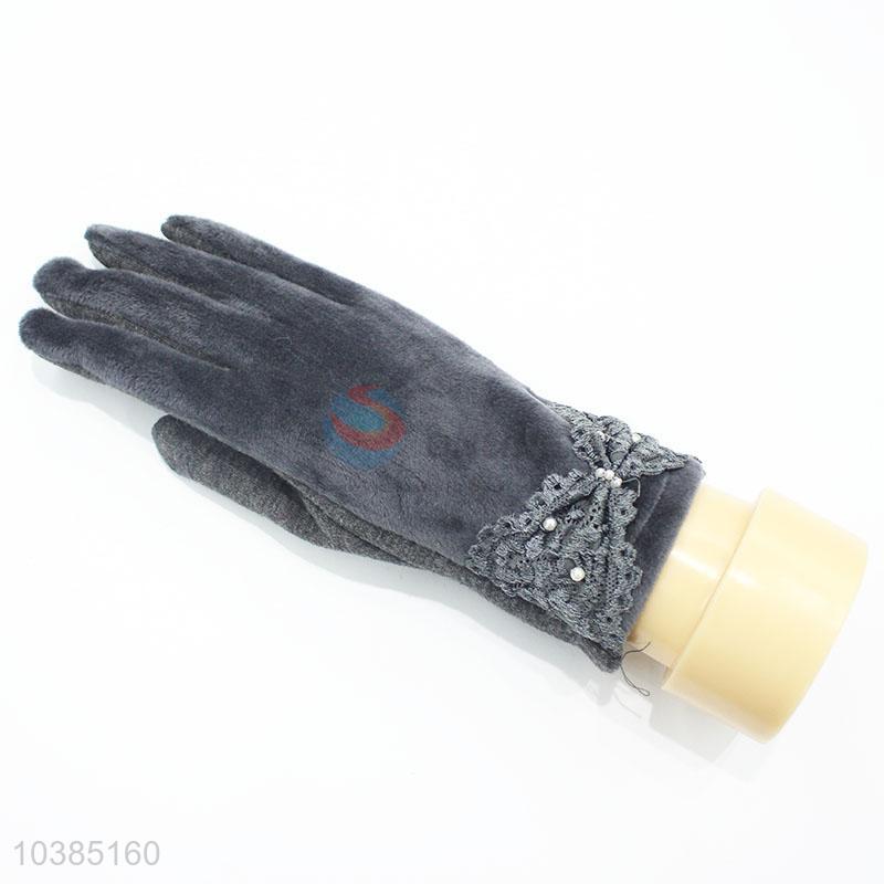 Mittens Women Winter Lace Bowknot Female Ladies Mittens