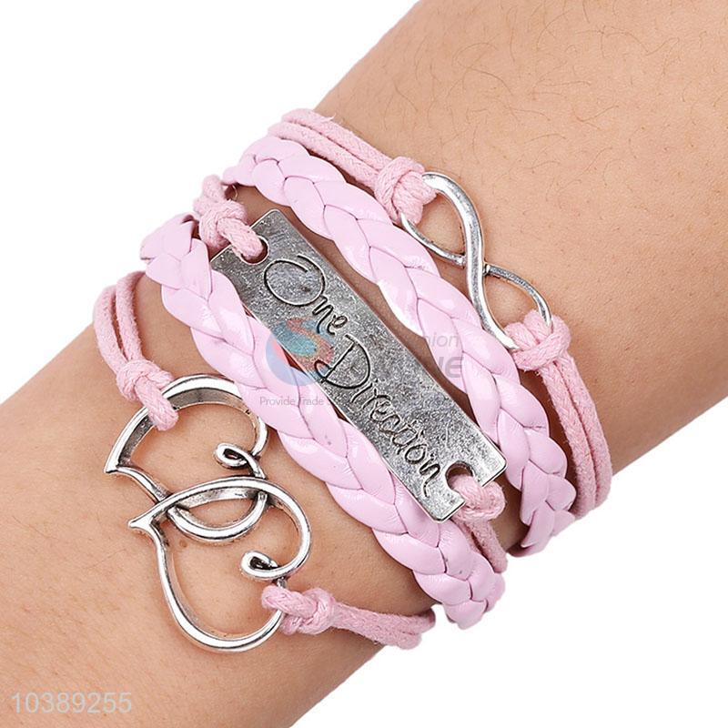 Modern Style Sweet Heart Pink Handmade Bracelet