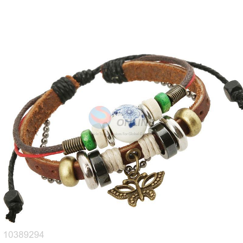 Hot Selling Butterfly Beaded Leather Bracelet