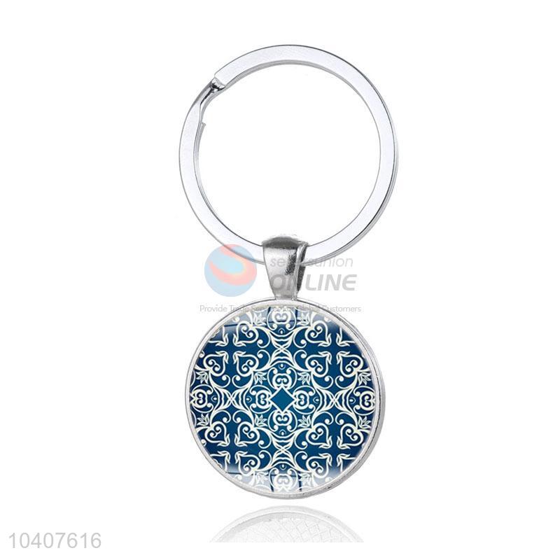Flower Pattern Round Metal Key Chain/Key Ring