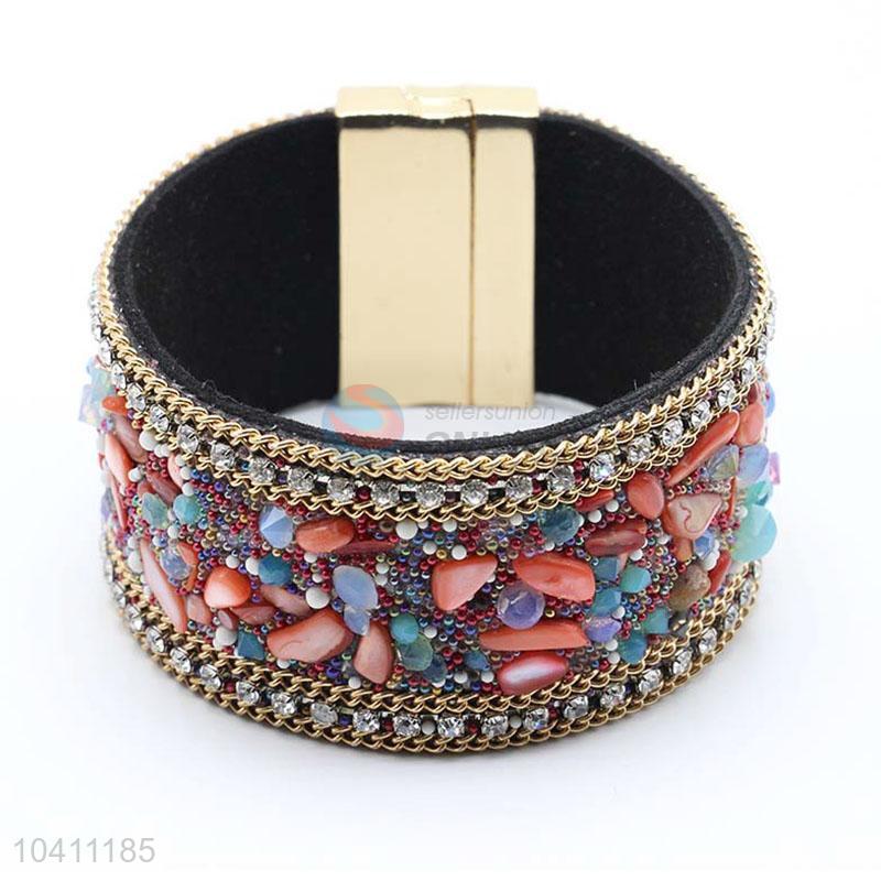 - Material :Alloy magnet buckle + Leather + Acrylic beads