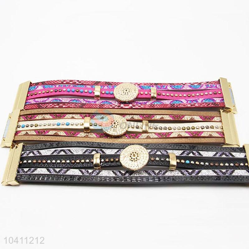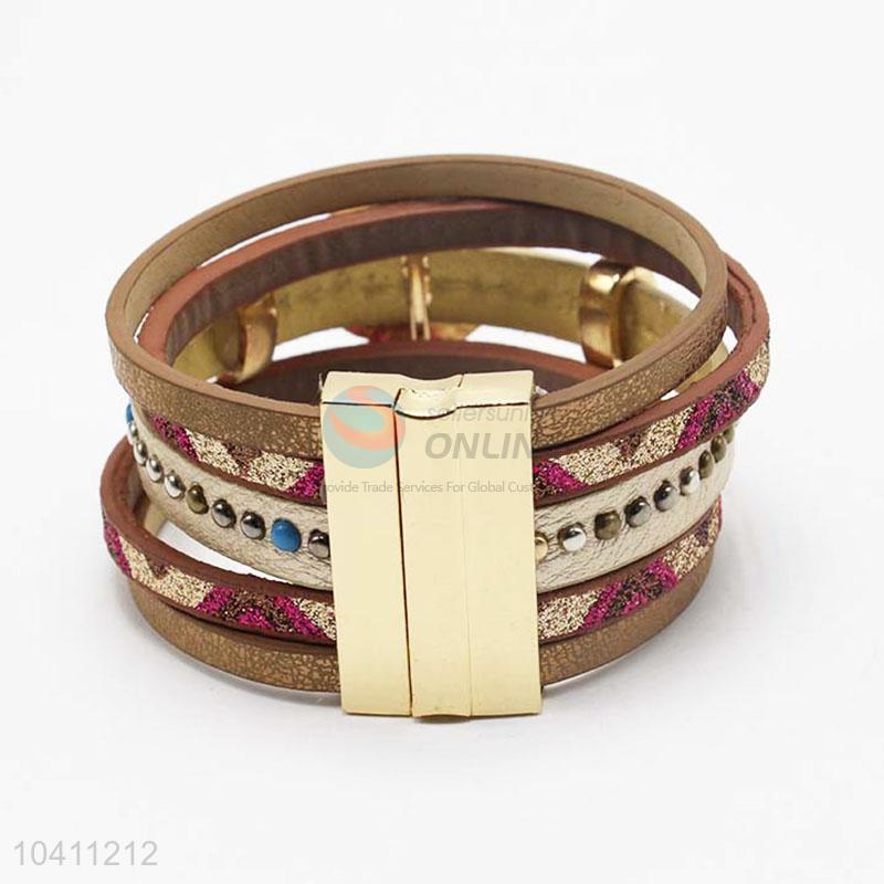 High Quality Cheap Custom Wide Leather Magnetic Clasp Bracelet