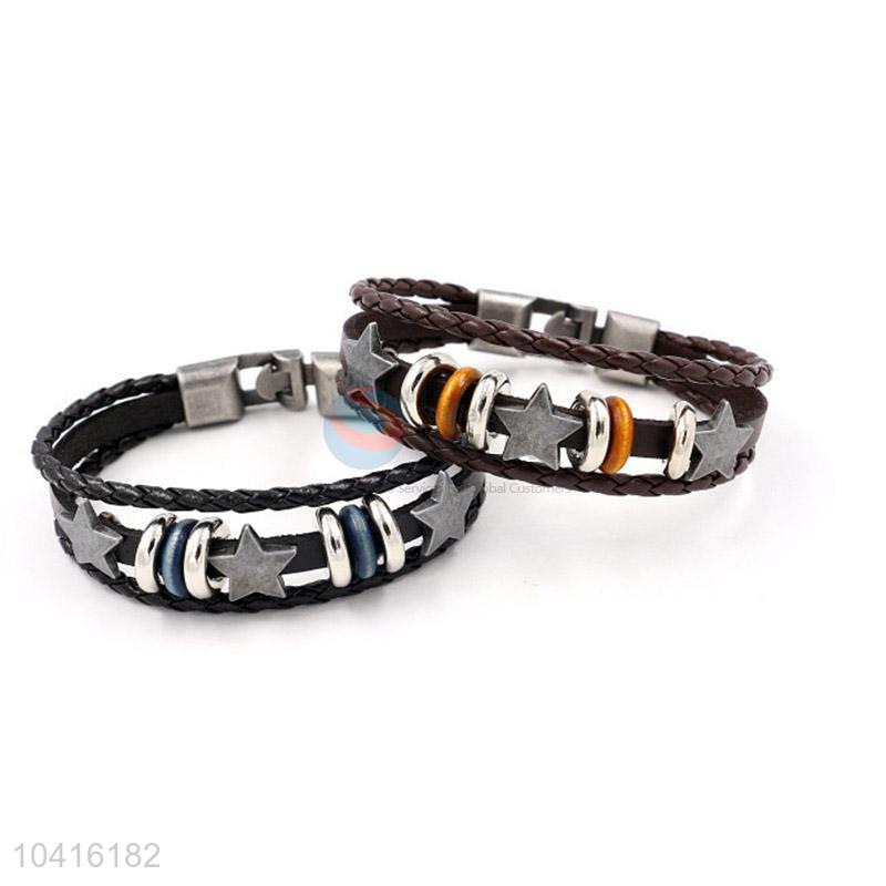 • China maker handmade retro multilayer leather beaded bracelet for men