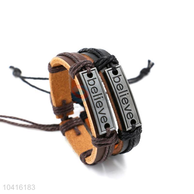 • China maker handmade retro multilayer leather beaded bracelet for men