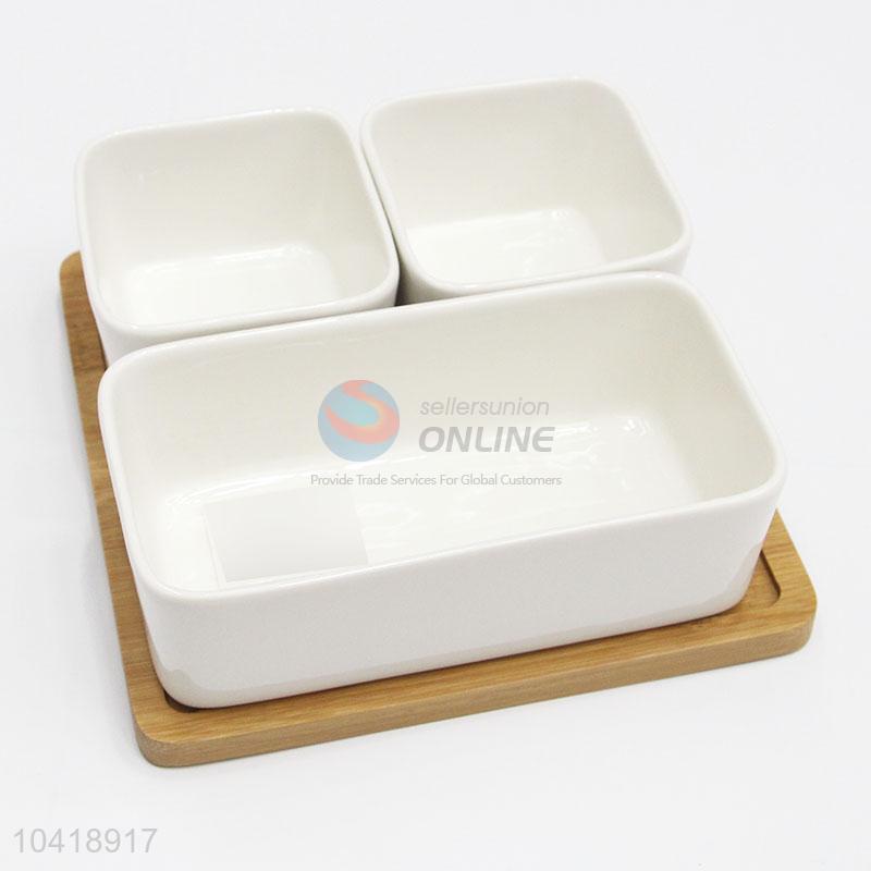 • Square Shaped Ceramic Tableware Dish with Bamboo Tray