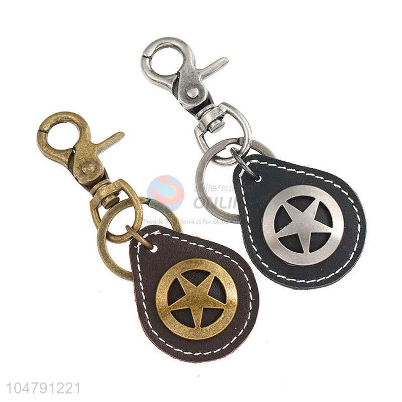 Factory supply premium quality five-point star cowhide key chain