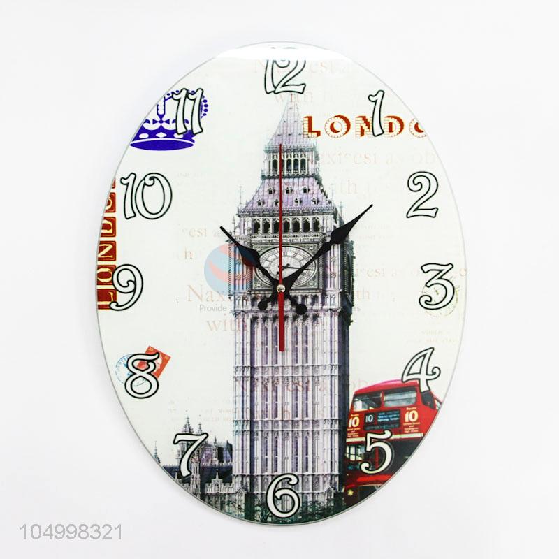 Good Quality Simple Design Oval Shaped Glass Wall Clock