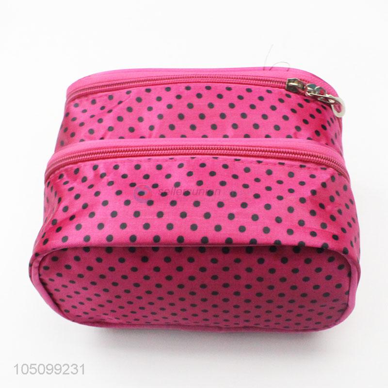 Portable Rose Red Low Price Dotted Cosmetic Bag for Sale