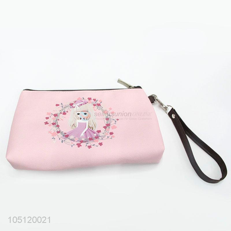 Promotional Gift Mini Pink Color Cute Girl Printed Coin Purse with Zipper