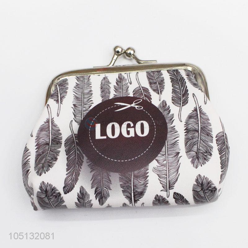 Factory Direct Black Feather Printed PU Leather Custom Logo Coin Purse Hasp Pouch