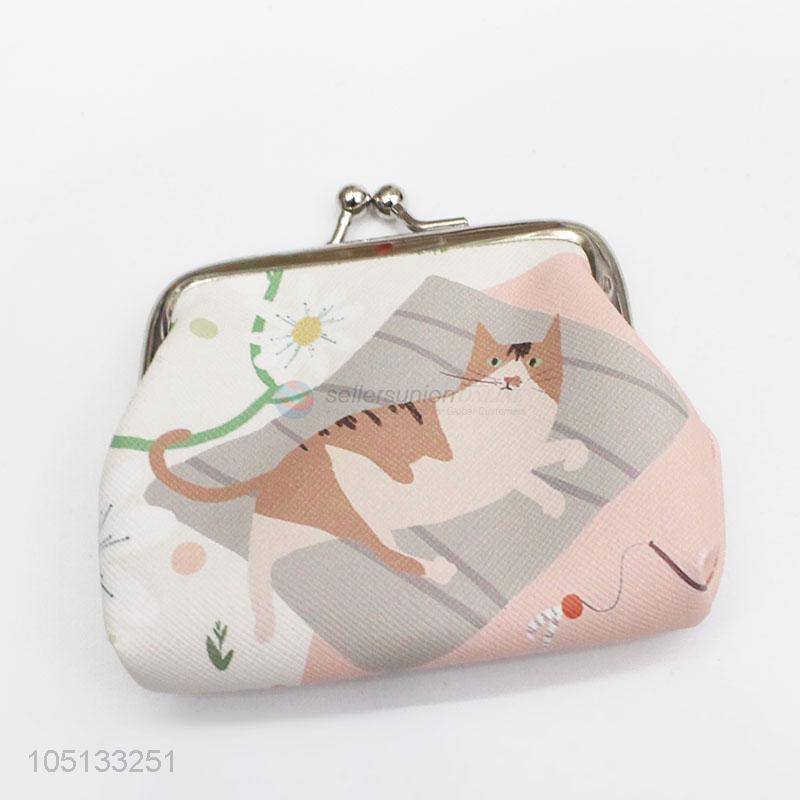 Cute Cartoon Cat Printed Money Holder Mini Pocket PU Leather Coin Purse