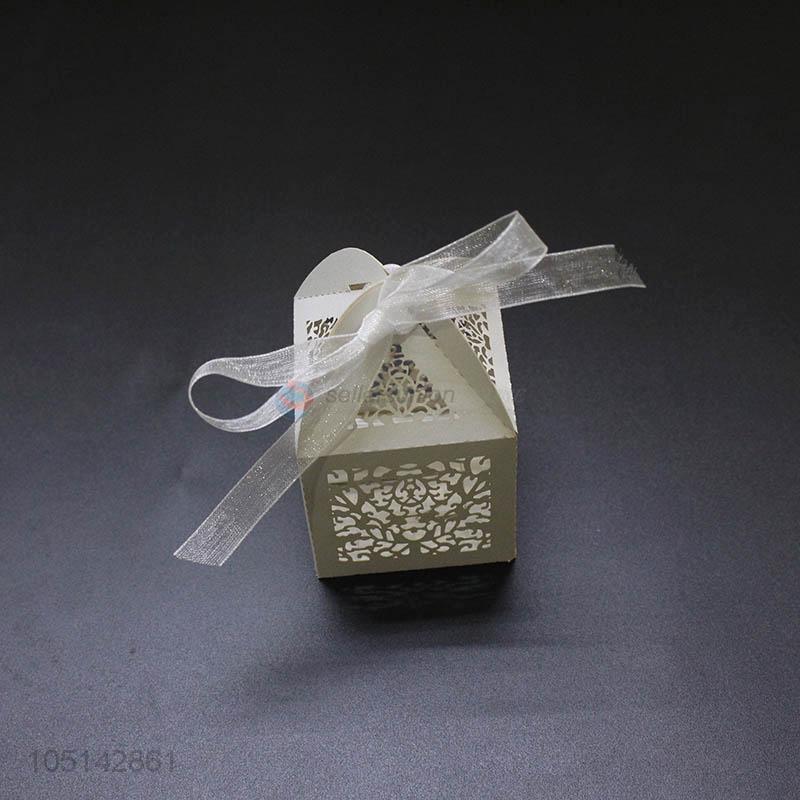 Best selling laser cut paper candy box with ribbon