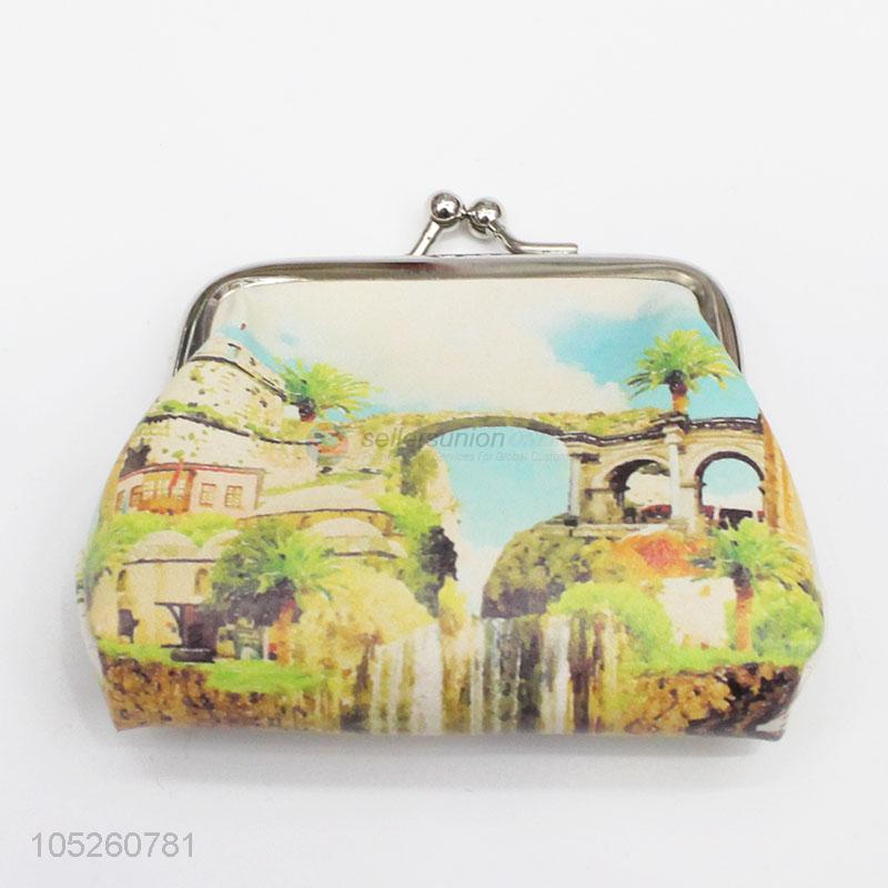 Women Small PU Leather Famous Building Coin Purse for Promotional