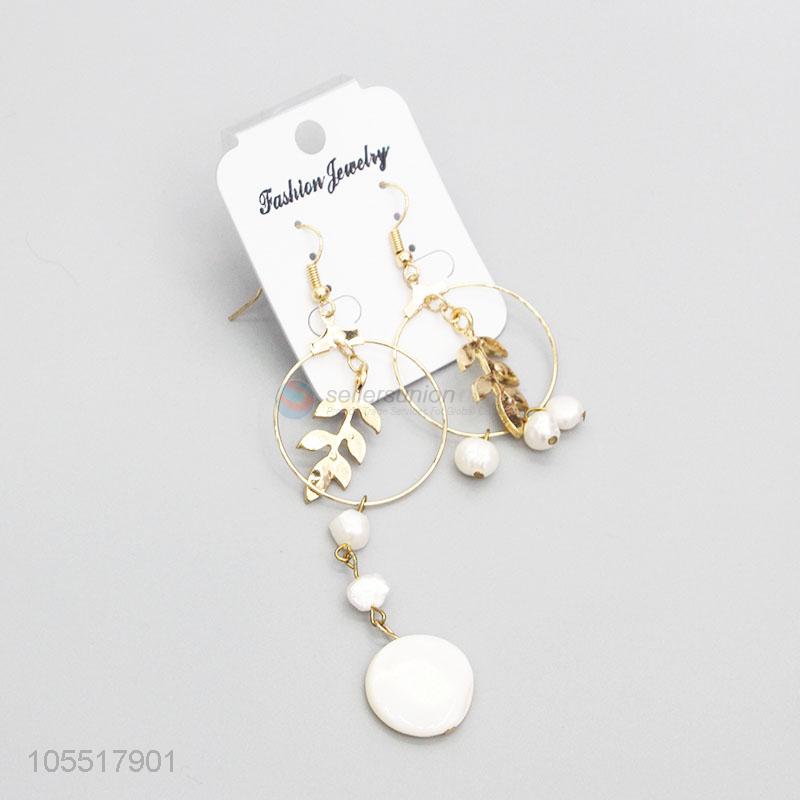 Factory Promotional Woman Girls Jewelry Hollow Circular Leaf Earrings