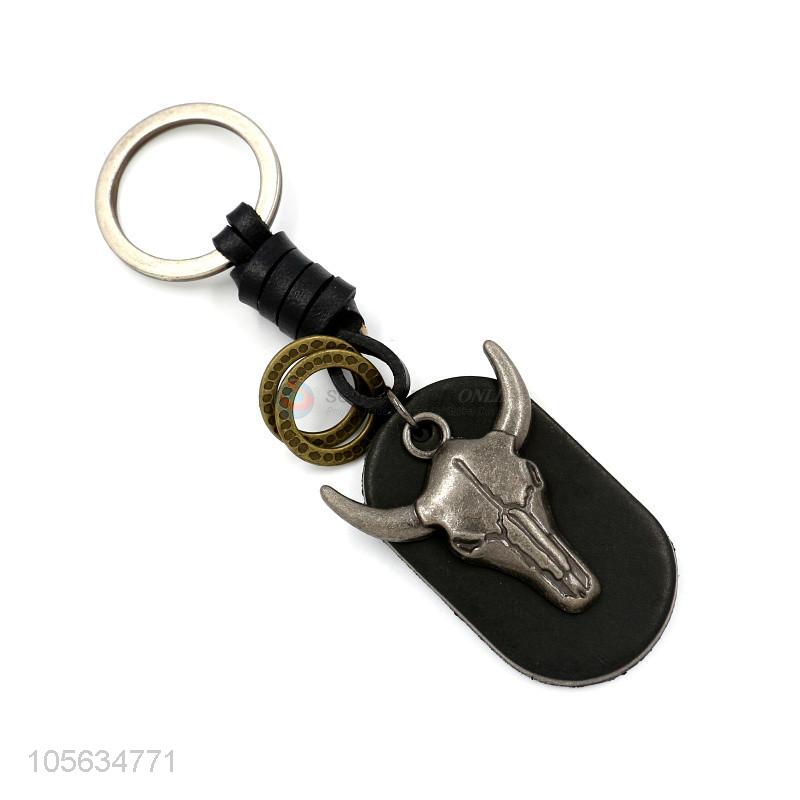 China supplier vintage bull shape alloy key chain matte key ring for men
