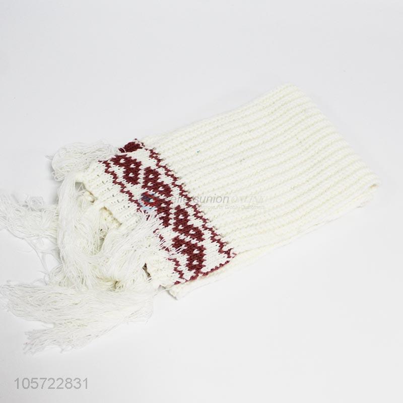 Wholesale adult winter acrylic knitted scarf with tassels