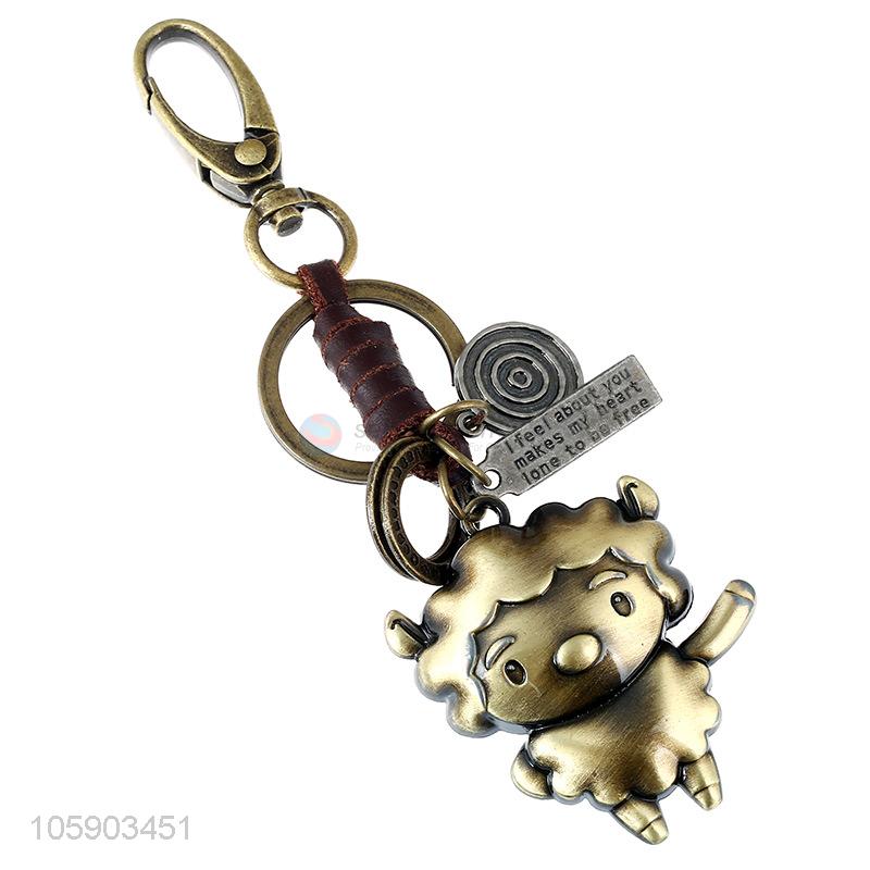 Hot selling retro alloy sheep pendant weaving leather key chain