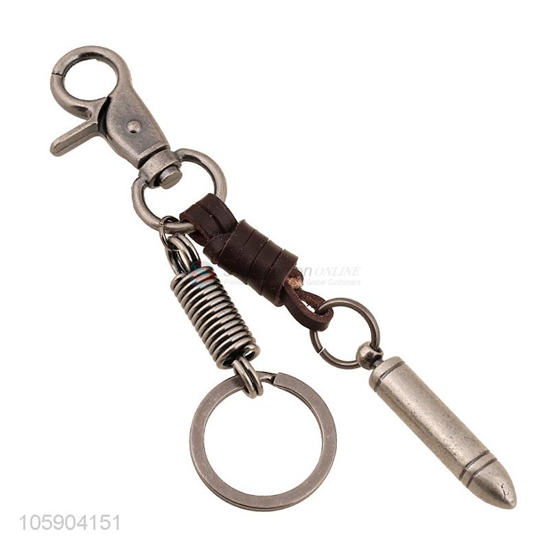 ODM factory bullet alloy pendant key chain leather key ring