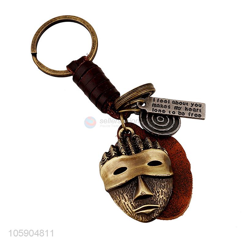 New style custom retro alloy mask pendant weaving leather key chain
