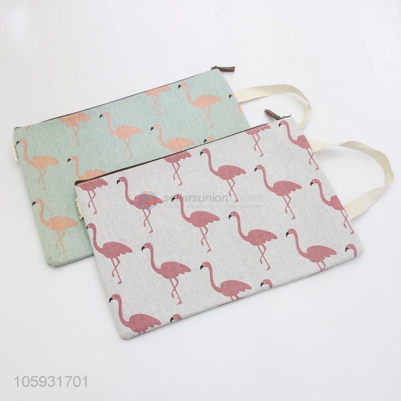 Low Price Lovely Flamingo Cotton and Linen Portable File Bag