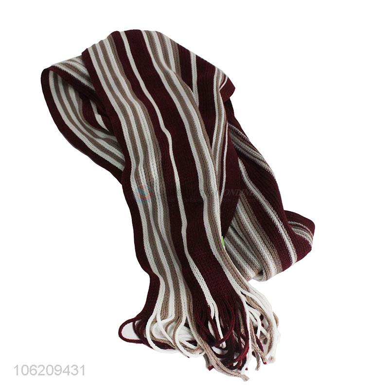 High quality stripe knitted polyester scarf for ladies
