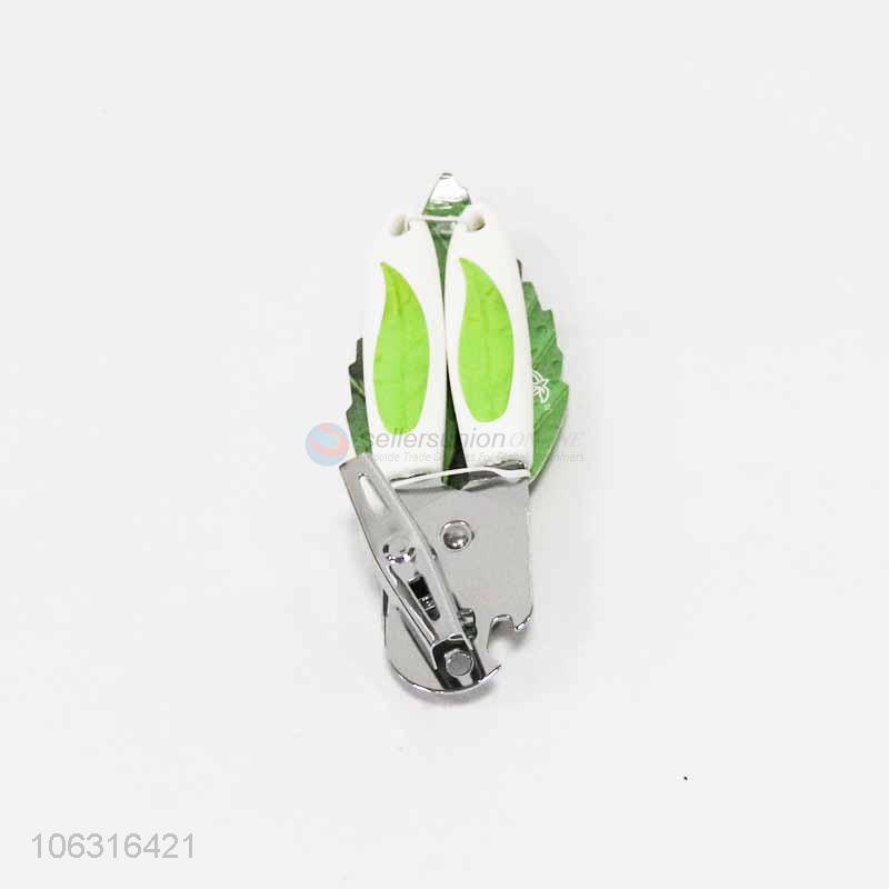 High quality stainless steel can opener with green leaf printed handle