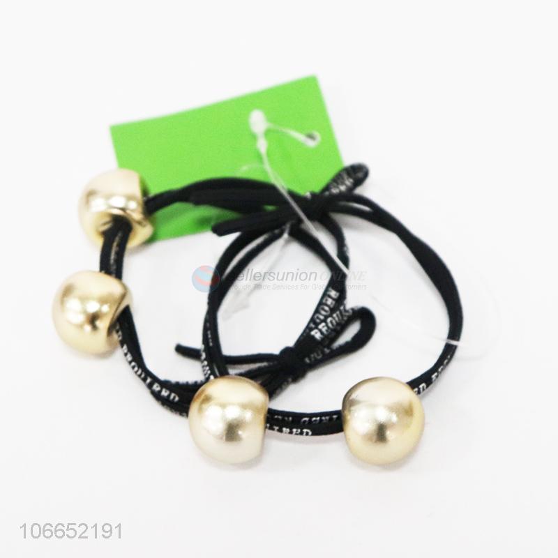 Promotional simple 2pcs round beads hair rings for women