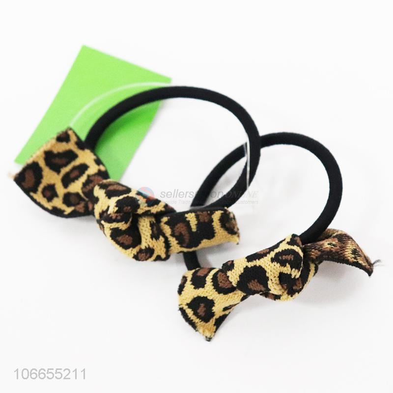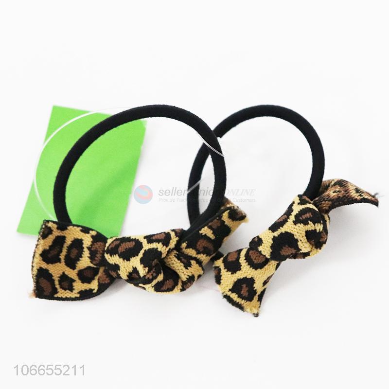 Hot selling 2pcs leopard printed bowknot hair rings
