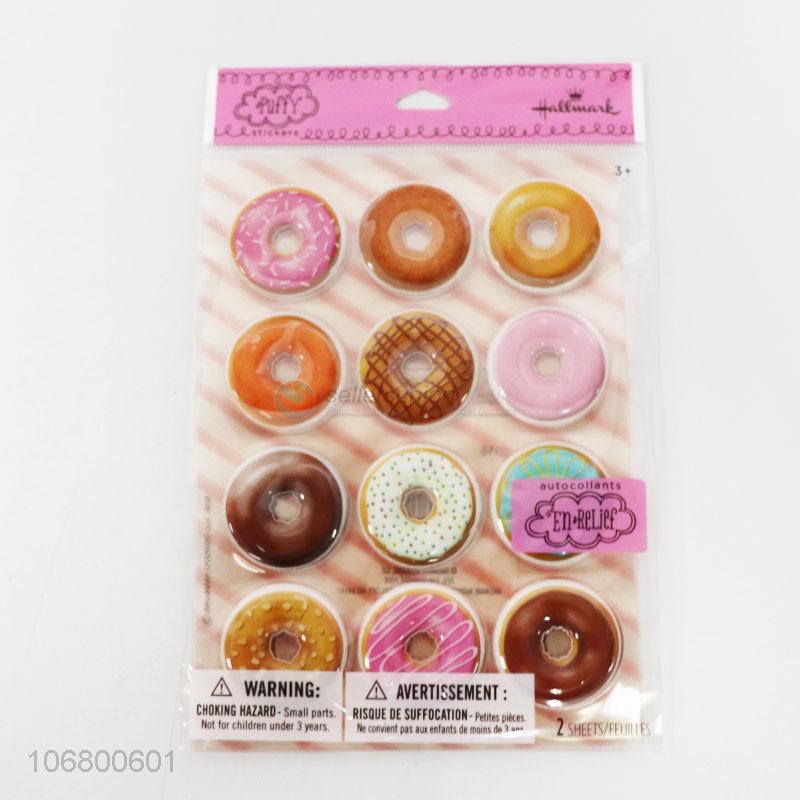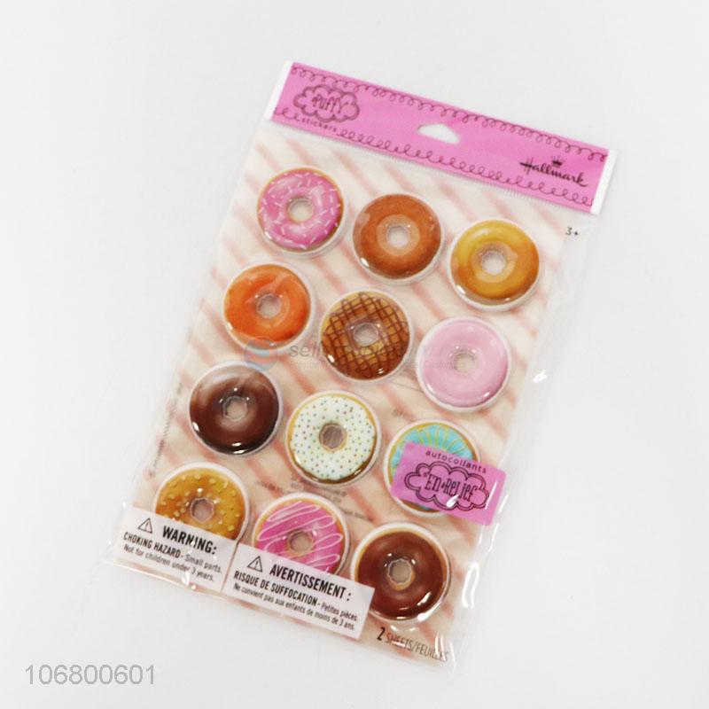 New design 24pcs pvc puffy donut stickers for decoration